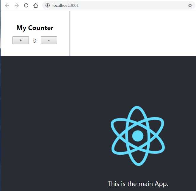 }Now this looks much better, we can’t even tell that ReactCounter is an external stand-alone application, it looks and behave like any other component.