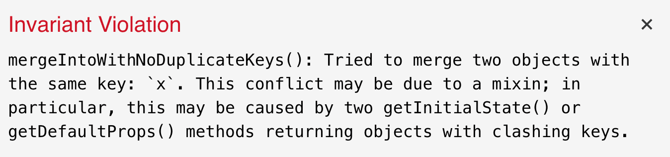 In fact, we went a step back. With mixins we at least had a warning that we have a conflict with keys, with HOCâs we donât get that warning and as you can see, our application has a bug.